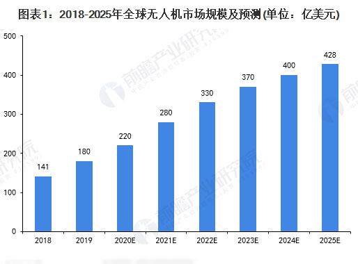 前瞻產(chǎn)業(yè)研究院在數(shù)年前就預(yù)測(cè),全球無(wú)人機(jī)市場(chǎng)在2025年的規(guī)模將達(dá)到428億美元。